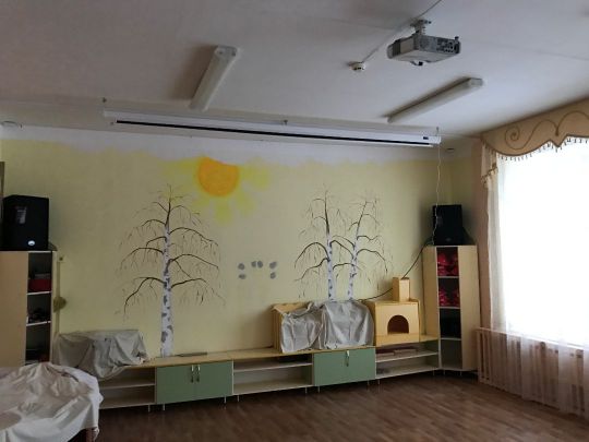 проекторы были установлены в рекреационной зоне школы и в зале детского