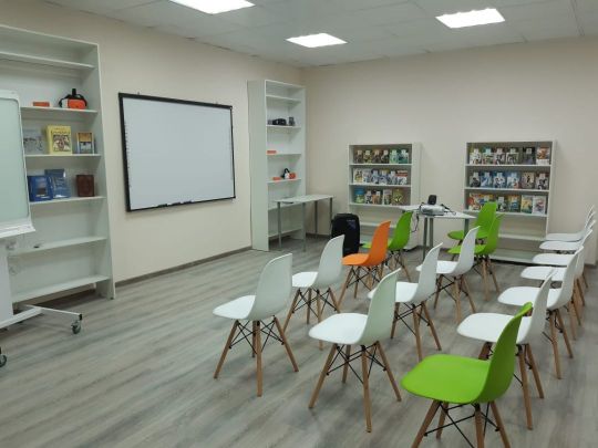 Так, в библиотеке был оборудован современный конференц-зал, для которого нами было приобретено и установлено оборудование. Интерактивная доска с проектором, а также электронный флипчарт позволят проводить презентации, встречи любого формата и совещания с использованием цифровых технологий в интерактивной форме.