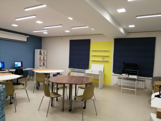 Яркий пример этого преображения - пространство читательского зала, который теперь является многофункциональным залом-трансформером. Например, в течение нескольких минут зал может превратиться в полноценный конференц-зал или кинозал. Проекционное оборудование (проектор с высокой яркостью для организации просмотра впечатляющих презентаций, обучающих фильмов), моторизованный экран (при необходимости, может быть легко убран), акустическая система поставлены и установлены нашей компанией.